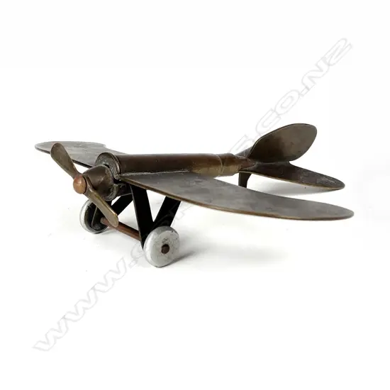 A small rare trench art model of a fixed wing propeller driven model aeroplane Estimate: $100