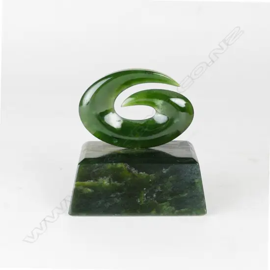 A 19thC decorated whalebone walking stick with later sculpted greenstone handle Estimate: $1,800 - $2,200