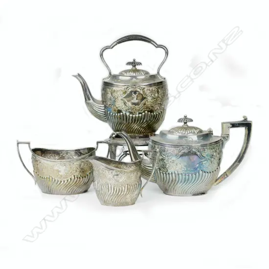 A five piece hand beaten Tudric pewter tea set made by Liberty & Co. Estimate: $200