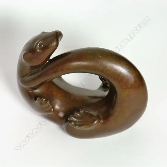 Crown Lynn Wharetana ware lidded trinket box of rectangular form decorated in the 'Rauponga Pattern' (#1002) the lid inscribed 'An Appreciation from George Harrison and Co Ltd...'