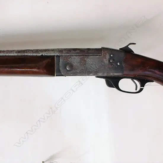An antique hammer action 12-gauge double barrel shotgun Estimate: $100