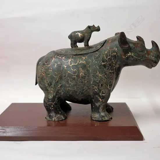 A Chinese archaic style bronze rhinoceros lidded vessel Estimate: $450