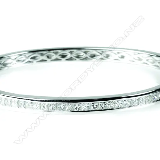 A modern 18ct. white gold and diamond hinged bangle Estimate: $3,800