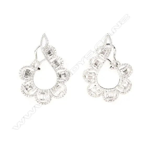 A pair of modern 18ct. white gold and diamond cluster scroll earrings Estimate: $6,000 - $7,000