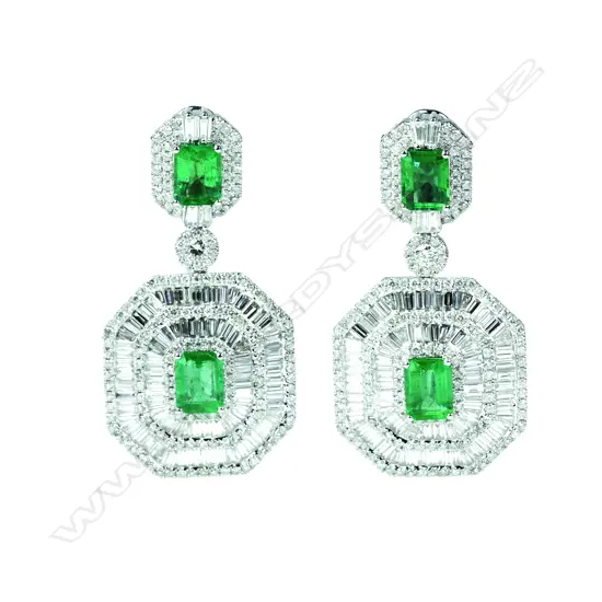 A pair of large and impressive 18ct. white gold emerald and diamond cluster drop earrings Estimate: $16,000 - $20,000