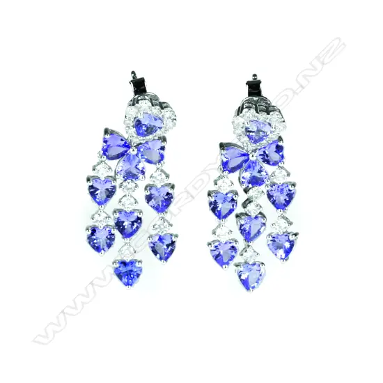 A pair of modern 18ct. white gold tanzanite and diamond earrings Estimate: $3,000