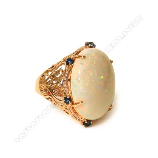 An 18ct. rose gold large opal sapphire and diamond dress ring Estimate: $2,500 - $3,000