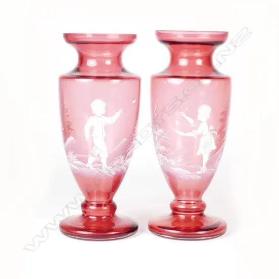 A pair of Mary Gregory cranberry glass vases Estimate: $150