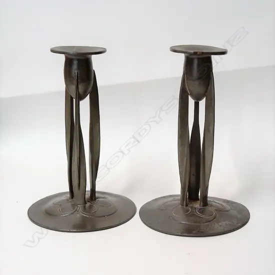 A pair of Archibald Knox English (Tudric) pewter candlesticks c.1902-1905 Estimate: $1,000 - $1,250