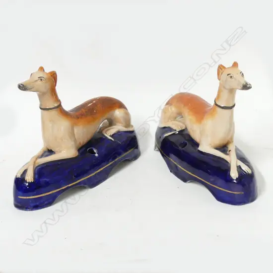 A pair of Victorian Staffordshire greyhound quill holders Estimate: $120