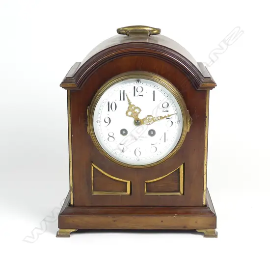 An Edwardian mahogany cased mantel clock of bracket type form Estimate: $200