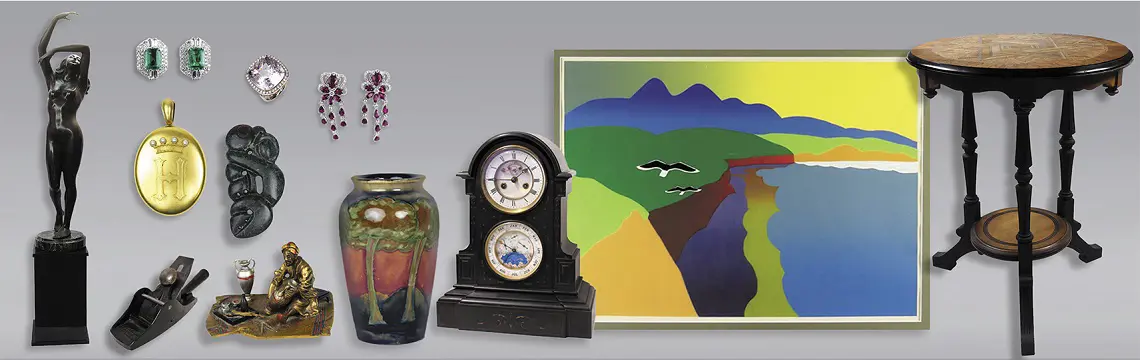 Welcome back to our first auction of 2020. At 10am with have on offer a superb eclectic mix from estates & private vendors. Including: copper kitchenalia, fishing, travel posters, maps, a set og Asti 'beauty' postcards with love letters to reverse, good vintage woodworking tools, N.Z. pottery pipes, traps & bricks, militaria, WWII Fairburn Sykes dagger large entry of Pacific & African tribal items, Maori & early N.Z. historical pieces, N.Z. pottery, Waterford, Chinese & Japanese jades, ceramics & art. The second session begins at 5pm with jewellery. Diamond, sapphire, emerald rings, bracelets, necklaces & a good selection of earrings, a special section of mourning jewellery includes an impressive gold locket from Lord Hanmer, gold chains, pearls and more. Clocks, pocket & wristwatches, collector’s silver, tea & coffee pots, salvers & cutlery. Persian, Turkish & Afghani rugs of all sizes. Furniture, Georgian & Victorian tables, sideboards, desks, card tables, NZ colonial inlaid side table, French & Spanish pieces, Italian rococo bedroom suite, bronze sculptures & garden pots. A strong art section includes works by John Kinder, J.D. Perrett, Michael Smither, Lance O’Gorman, Joan Grehan & others together with national and international artists. Another ‘must be viewed’ auction at Cordys.