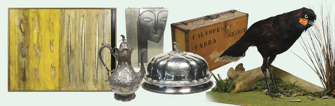 Includes: Louis Vuitton, German enameled singing bird box, large red marker buoy light, New Zealand historical sailing photos, artefacts, large pounamu boulder, an extinct taxidermy huia, Crown Lynn pieces ex. estate Crown Lynn employee, oriental collections, 18thC Japanese wakizashi sword, Georgian and other silver some quality pieces from the estate of a keen Auckland collector. Fine Art includes works by Malcolm Harrison, Stoddart, L.W. Wilson, Kura Te Waru Rewiri, Antique works etc., watches & clocks Ph 09 5231049 or email enquiries@cordys.co.nz. Fabulous entries already consigned. Another strong jewellery section and so much more. As prices are strong it has never been a better time to sell ! Contact us now for a no obligation auction estimate. Ph 09 5231049 or email enquiries@cordys.co.nz