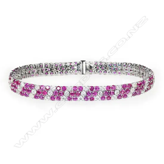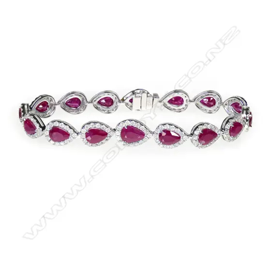 A 14ct white gold, diamond and ruby cluster style bracelet,