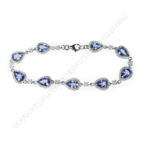 A 14ct white gold, sapphire and diamond halo tennis bracelet,