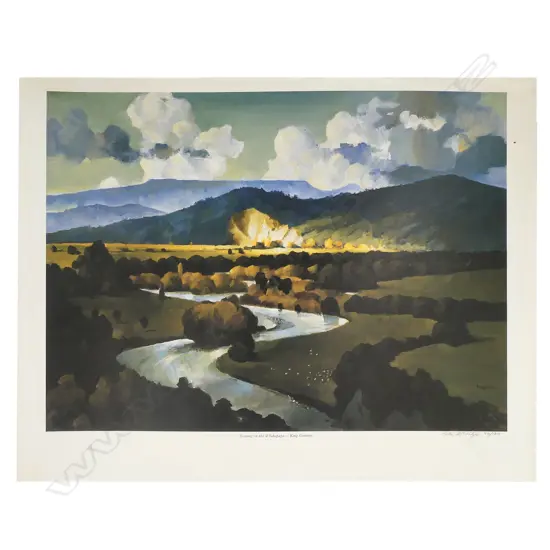 Raewyn Atkinson studio pottery squared dish - hand painted coloured glaze of red florals on blue, gold highlights. Signed and dated '89. W.330mm.