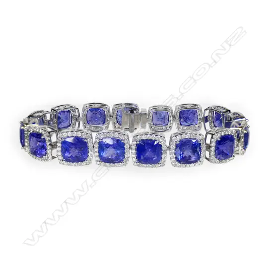 A 14ct white gold tanzanite and diamond halo bracelet, Estimate: $8,500 - $10,500