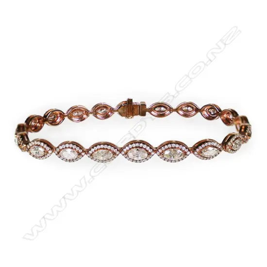 A 14ct rose gold and yellow diamond halo tennis bracelet, Estimate: $7,000 - $9,000