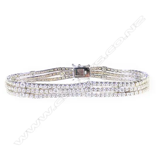 An 18ct white gold and diamond triple line bracelet, Estimate: $5,500 - $7,000