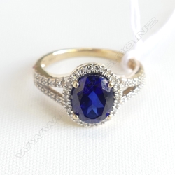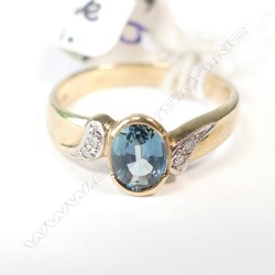 9CT BLUE STONE & DIAMOND RING