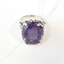 LGE AMETHYST & SILVER RING ART NOUVEAU STYLED SHOULDERS