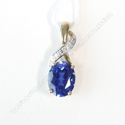 9CT SYTHETIC SAPPHIRE & DIA. PENDANT