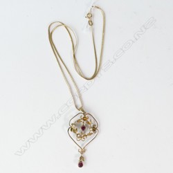 9 CT GOLD AND SEED PEARL EDWARDIAN PENDANT ON CHAIN