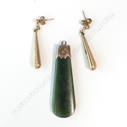 POUNAMU PENDANT (MOUNT A/F) + PR 9CT EARRINGS