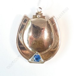 EDW. 9CT HORSESHOE FORM LOCKET W BLUE STONE