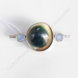 SILVER CATS EYE AND OPAL BROOCH