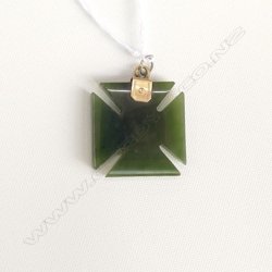 GOLD MOUNTED GREENSTONE MALTESE CROSS