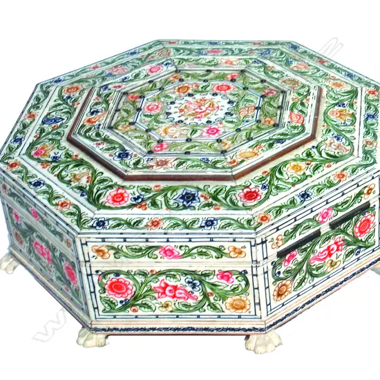 A c.1900 decorative Vizagapatam ivory octagonal lidded box