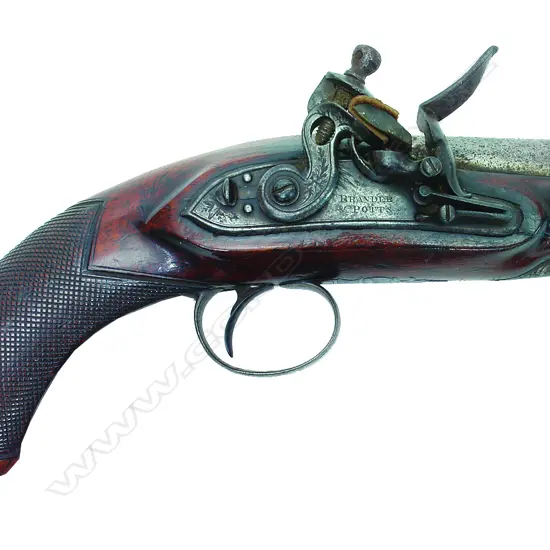 An English antique flintlock travelling pistol by Martin Brander and Thomas Potts