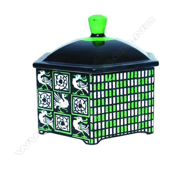 A rare Doulton Lambeth lustre ware earthenware box and cover designed by Reco Capey
