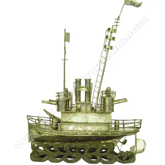 A Qing dynasty silver plated model of turret ship from the Sino-Japanese war