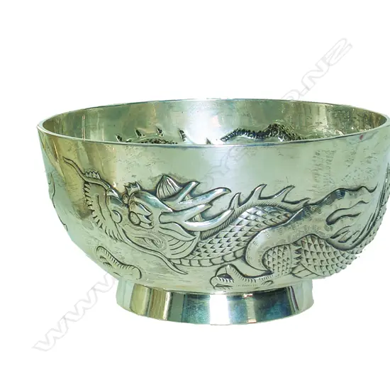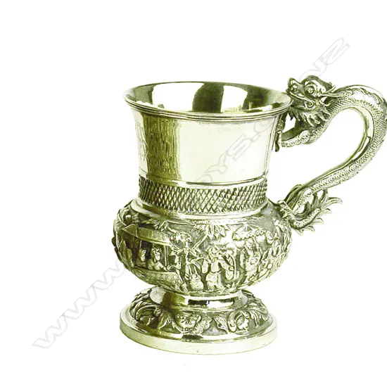 ANTIQUE CHINESE SIL.DECORATIVE MUG W DRAGON HANDLE