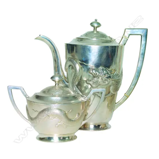 A c.1920s Chinese silver Tack Hing coffee pot and lidded sugar bowl