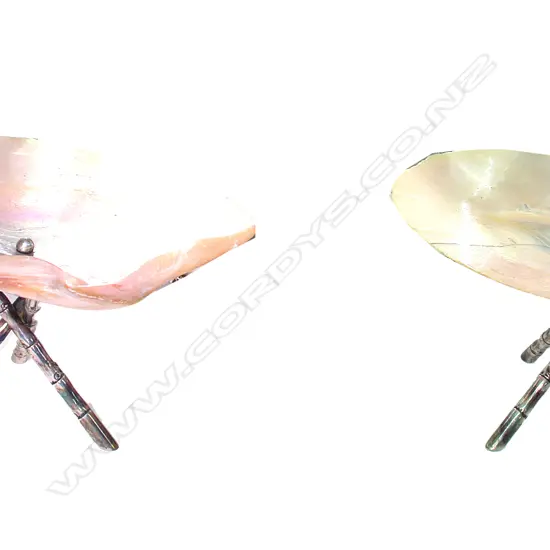 A pair of c.1900 Chinese silver Wang Hing & Co. shell dishes on silver stands