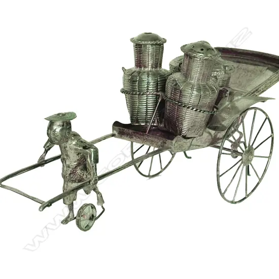 A Chinese silver Tack Hing novelty rickshaw cruet