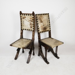 Two rare early 20thC Carlo Bugatti (1856-1940) Orientalist salon chairs